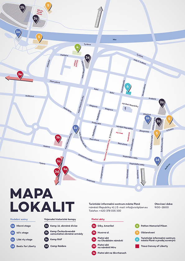 Úvod Festivalový servis Mapa lokalit Mapa lokalit Mapa lokalit ke stažení Potřebujete s něčím poradit? +420 378 032 506 slavnostisvobody@plzen.eu Nepřehlédněte důležité aktuality Všechny aktuality 6. 4. 2026 Dnes slaví 100. narozeniny americký veterán, příslušník 94. pěší divize, Joseph Thurmond 1. 4. 2026 Plzeň znovu ožije rokem 1945: Slavnosti svobody nabídnou přelety letadel i vzácného hosta 30. 3. 2026 Osvoboditel jihozápadních Čech Gideon Kantor slaví 101. narozeniny! 27. 3. 2026 Zemřel osvoboditel města Plzně Mark Steece 26. 3. 2026 Legiovlak 2026 - již od 31.3. ve Stupně a 7.4. v Plzni!!! 11. 2. 2026 Přede dvěma lety zemřel poslední z veteránů 17. střeleckého praporu, Paul Gaspard Jacobs 21. 1. 2026 Dnes slaví 100. narozeniny hrdina, veterán, osvoboditel jihozápadních Čech, příslušník 90. pěší divize, Vernon Schmidt! 18. 1. 2026 Dnes slaví 85. narozeniny náš přítel a ambasador Slavností svobody Plzeň pan George Patton Waters 15. 1. 2026 Dnes byl oslavil 102. narozeniny hrdina, veterán, osvoboditel jihozápadních Čech, příslušník 97. pěší divize, Richard Pieper 14. 1. 2026 Lincoln Harner Dnes slaví 101. narozeniny! Předchozí Následující
